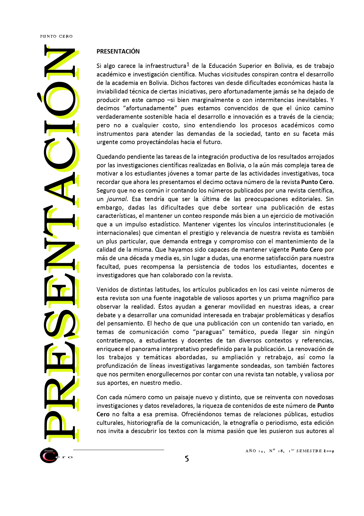 Punto Cero, R. (2025). Presentación. Revista Punto Cero, 14(18), 3–6. Recuperado a partir de https://puntocero.ucb.edu.bo/a/article/view/315