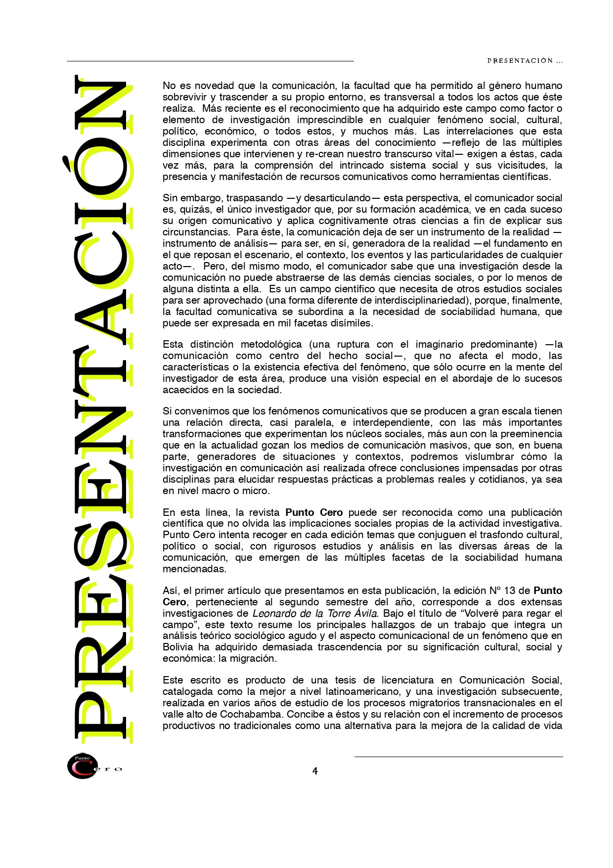 Punto Cero, R. (2025). Presentación. Revista Punto Cero, 11(13), 3–6. Recuperado a partir de https://puntocero.ucb.edu.bo/a/article/view/363