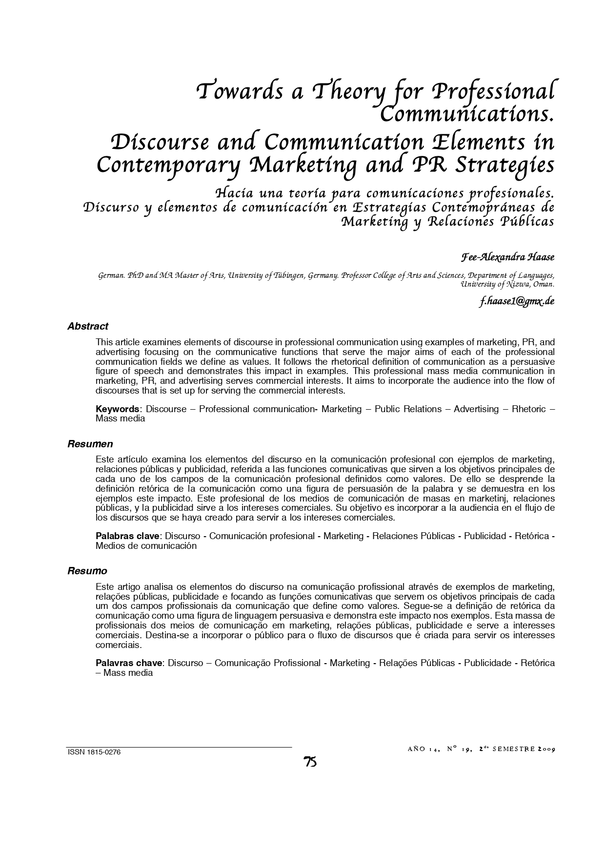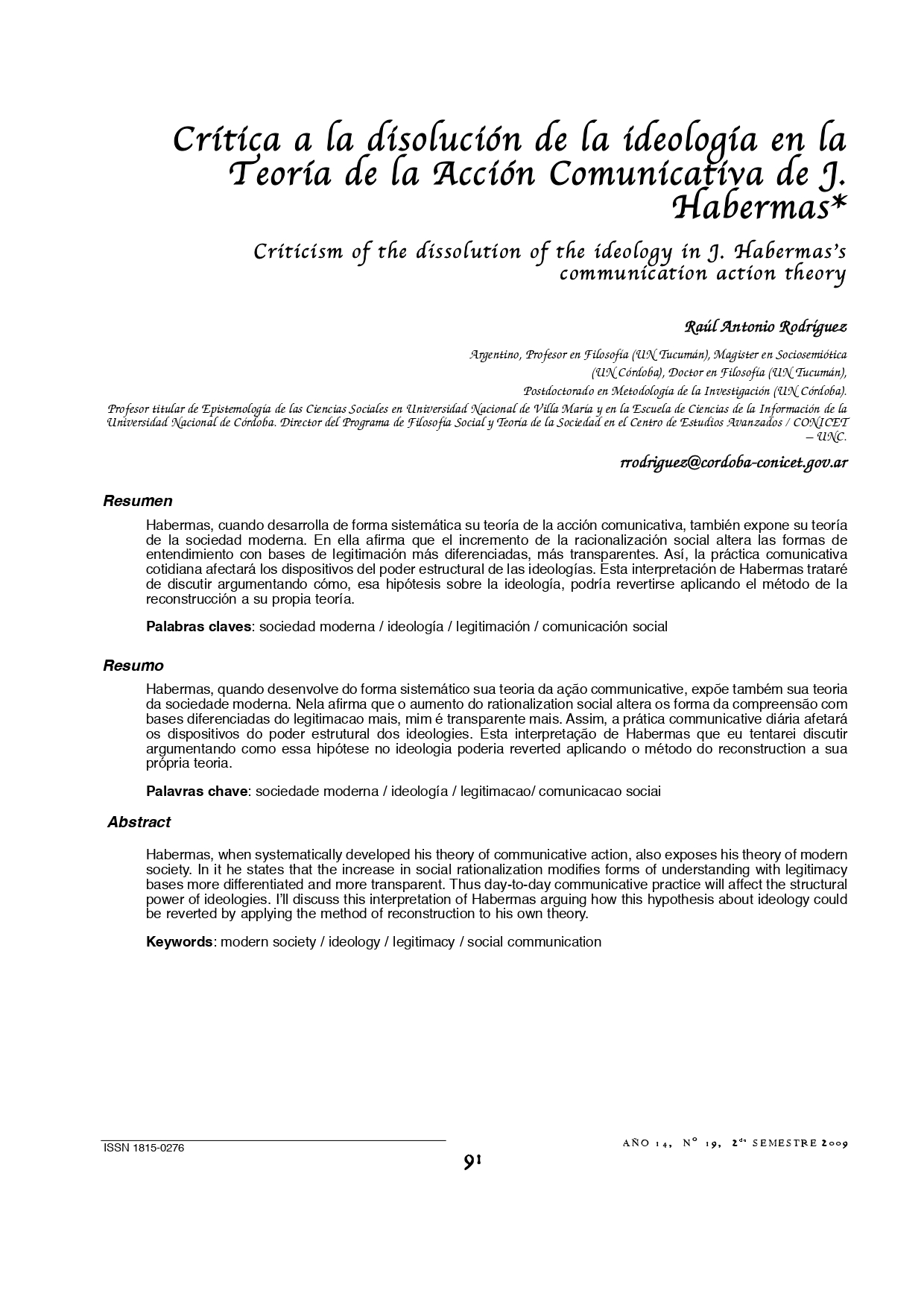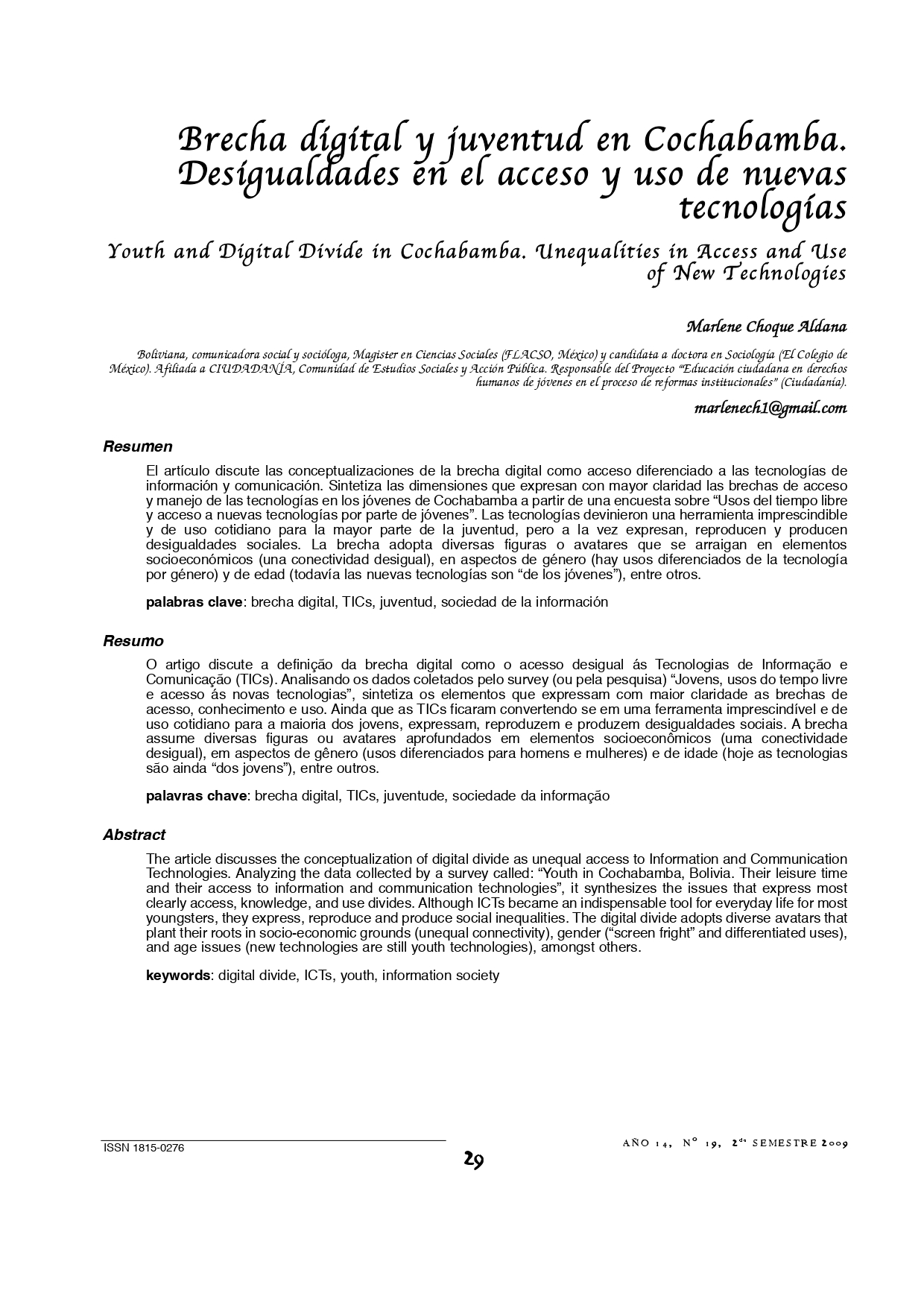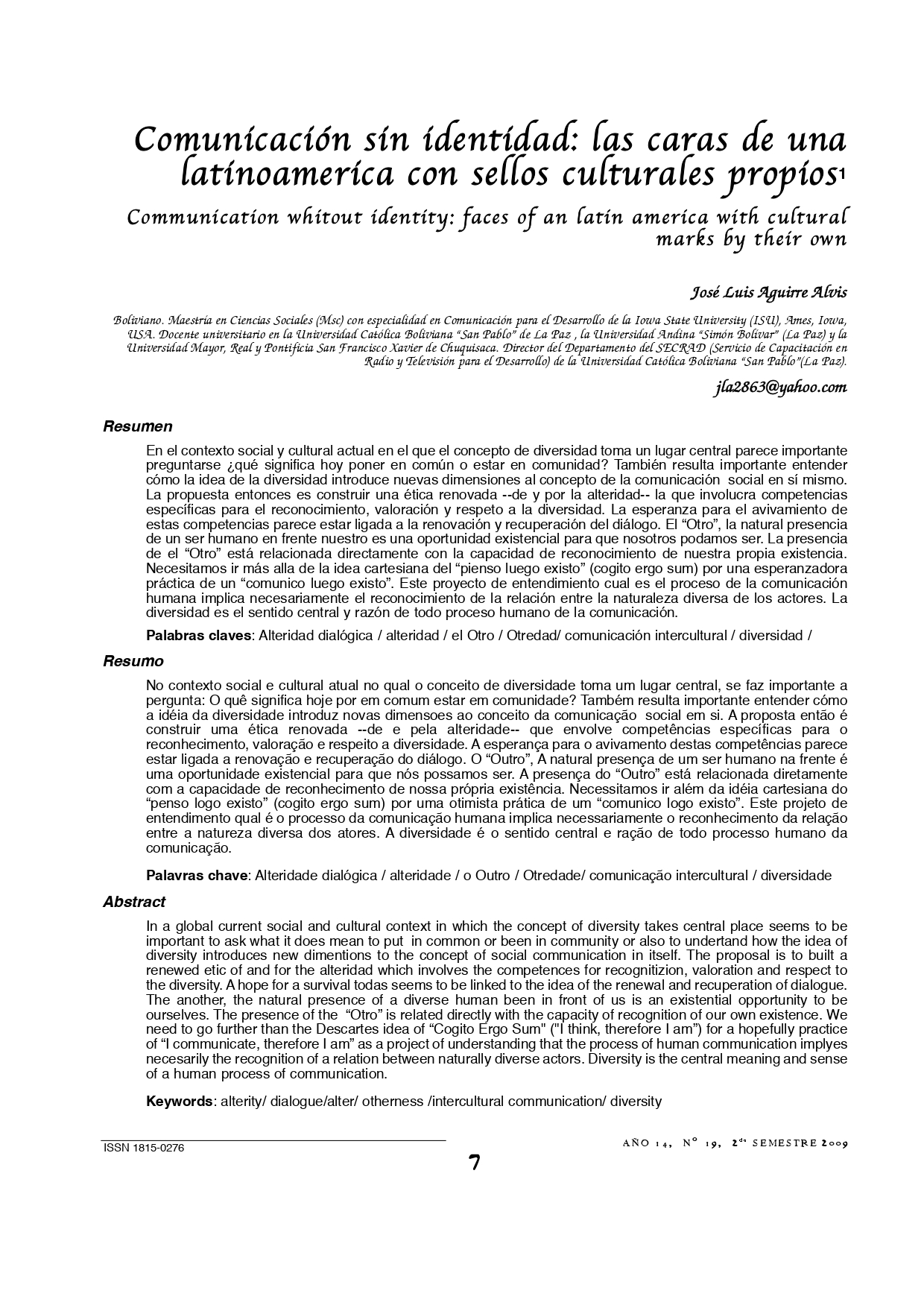 Vol. 14 Núm. 19 (2009): Revista Punto Cero No. 19