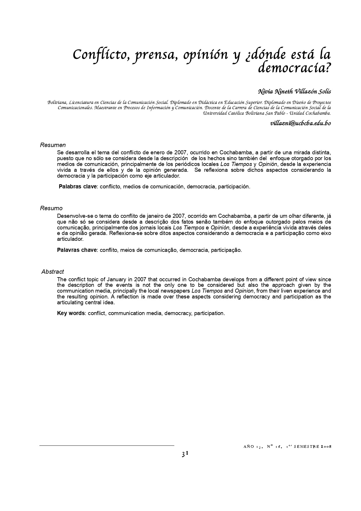 Ver Vol. 13 Núm. 16 (2008): Revista Punto Cero No. 16