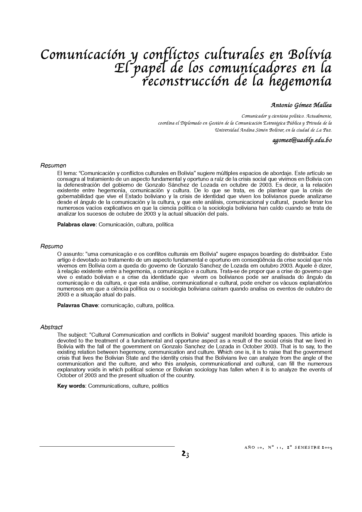 Vol. 10 No. 11 (2005): Revista Punto Cero No. 11