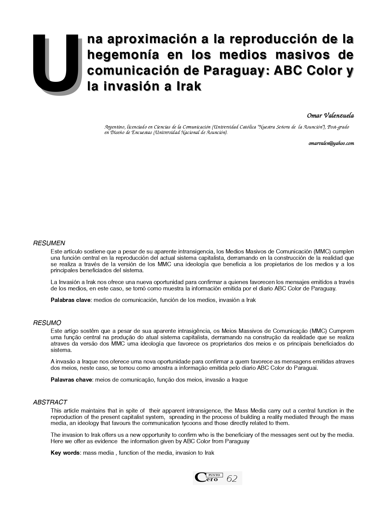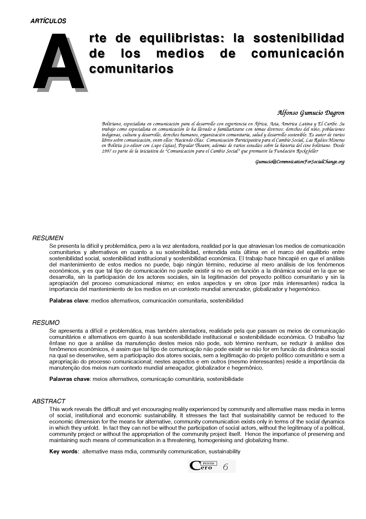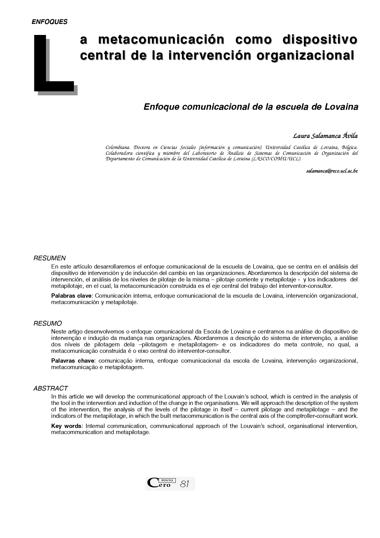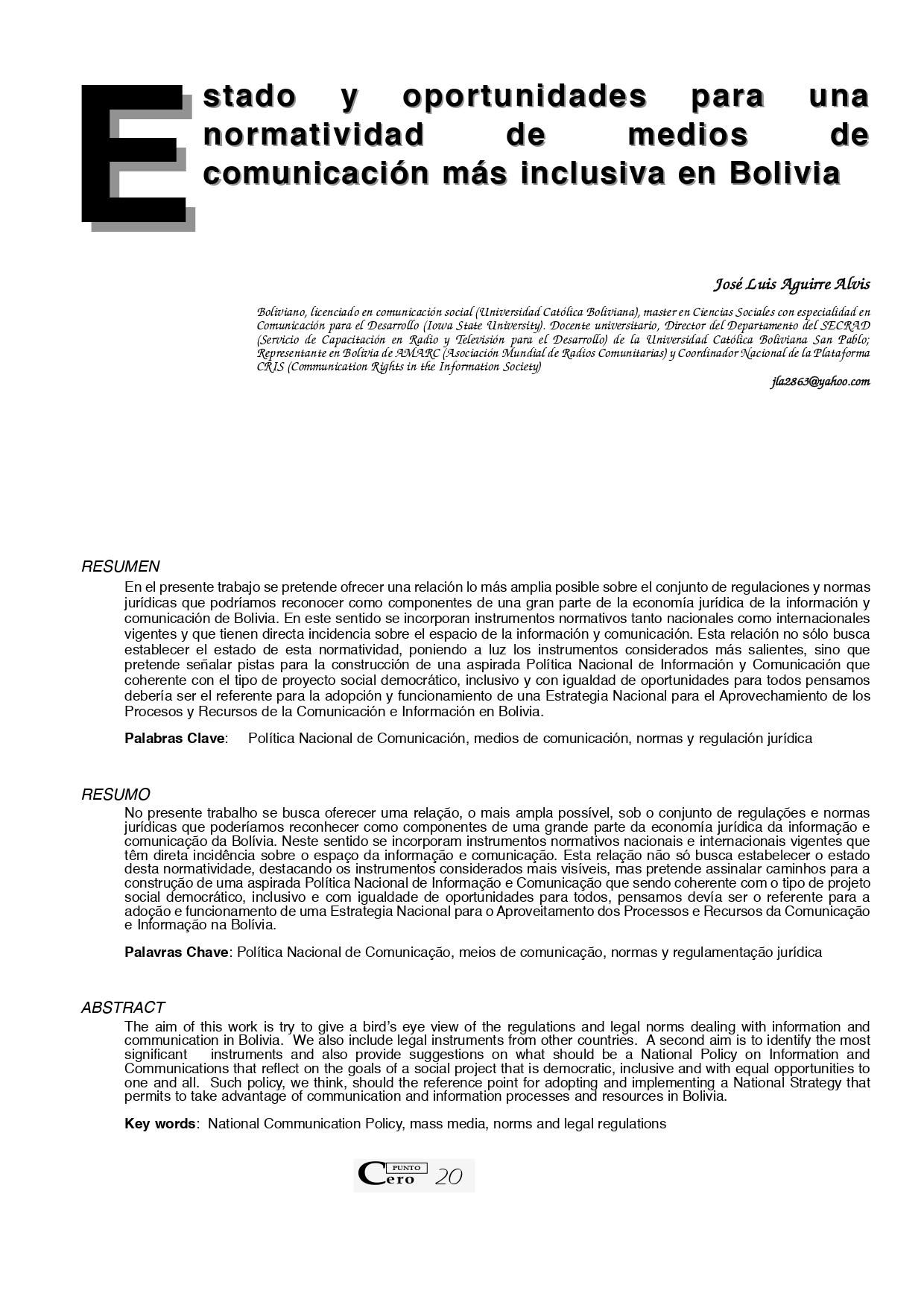 Vol. 10 No. 10 (2005): Revista Punto Cero No. 10