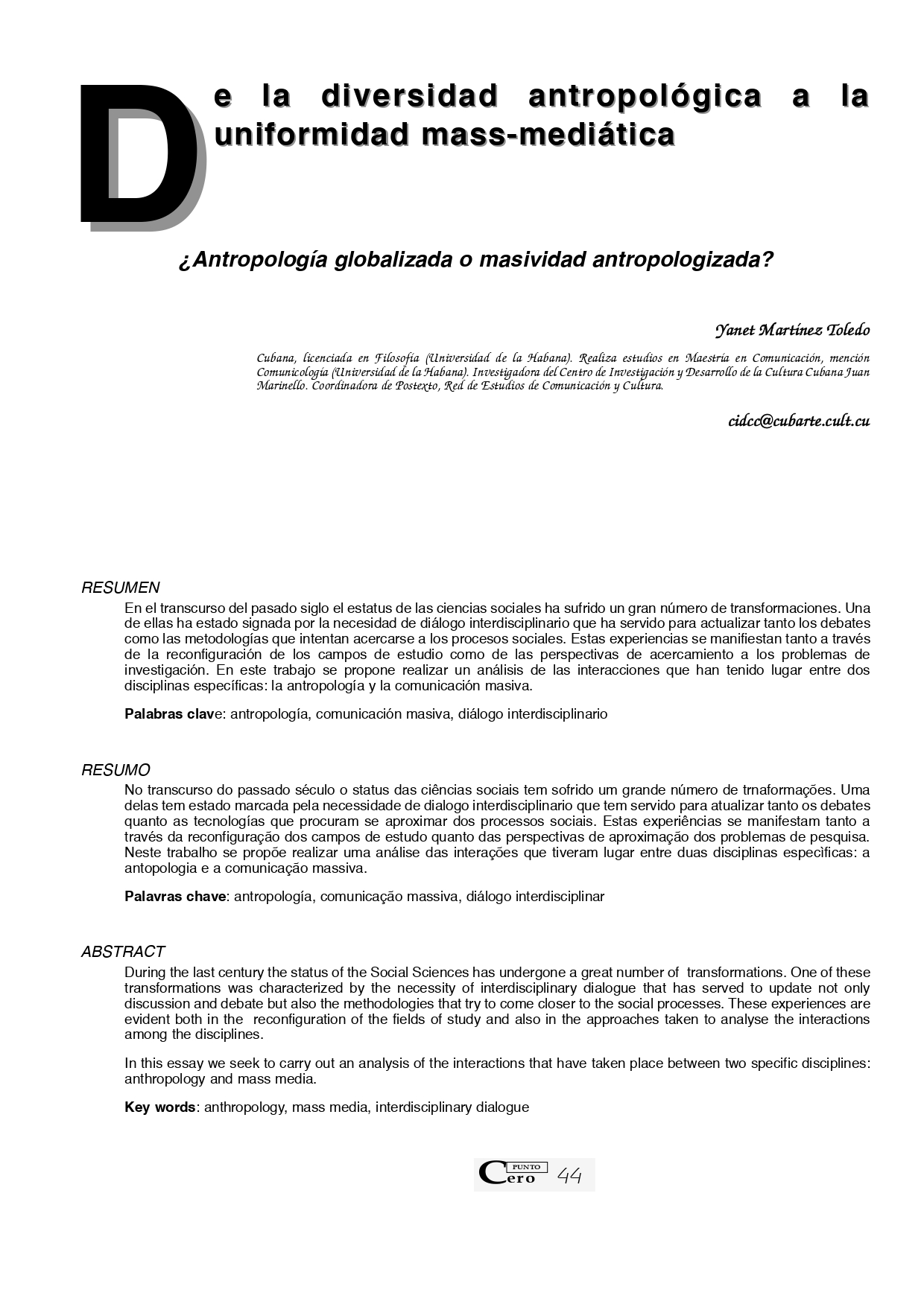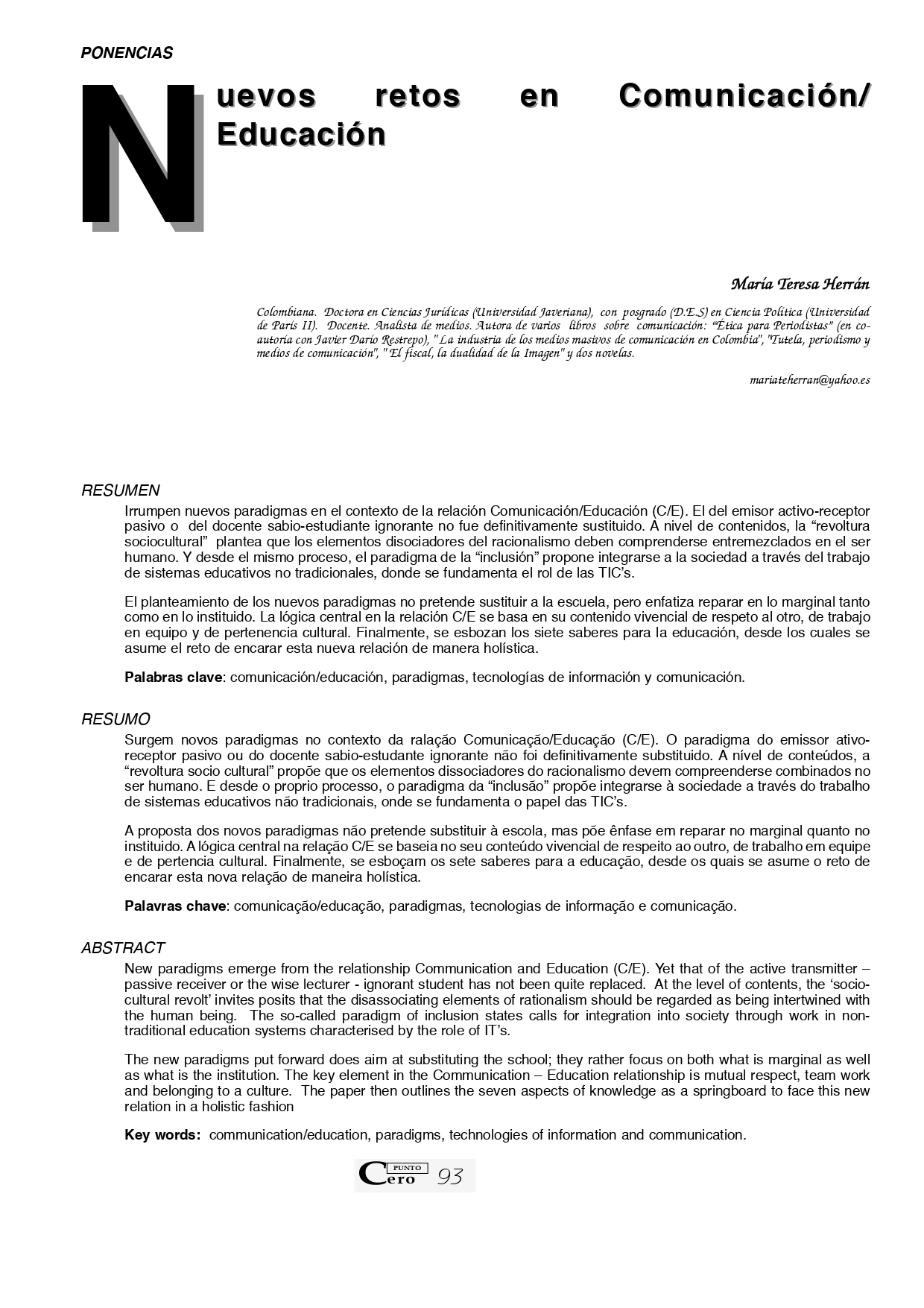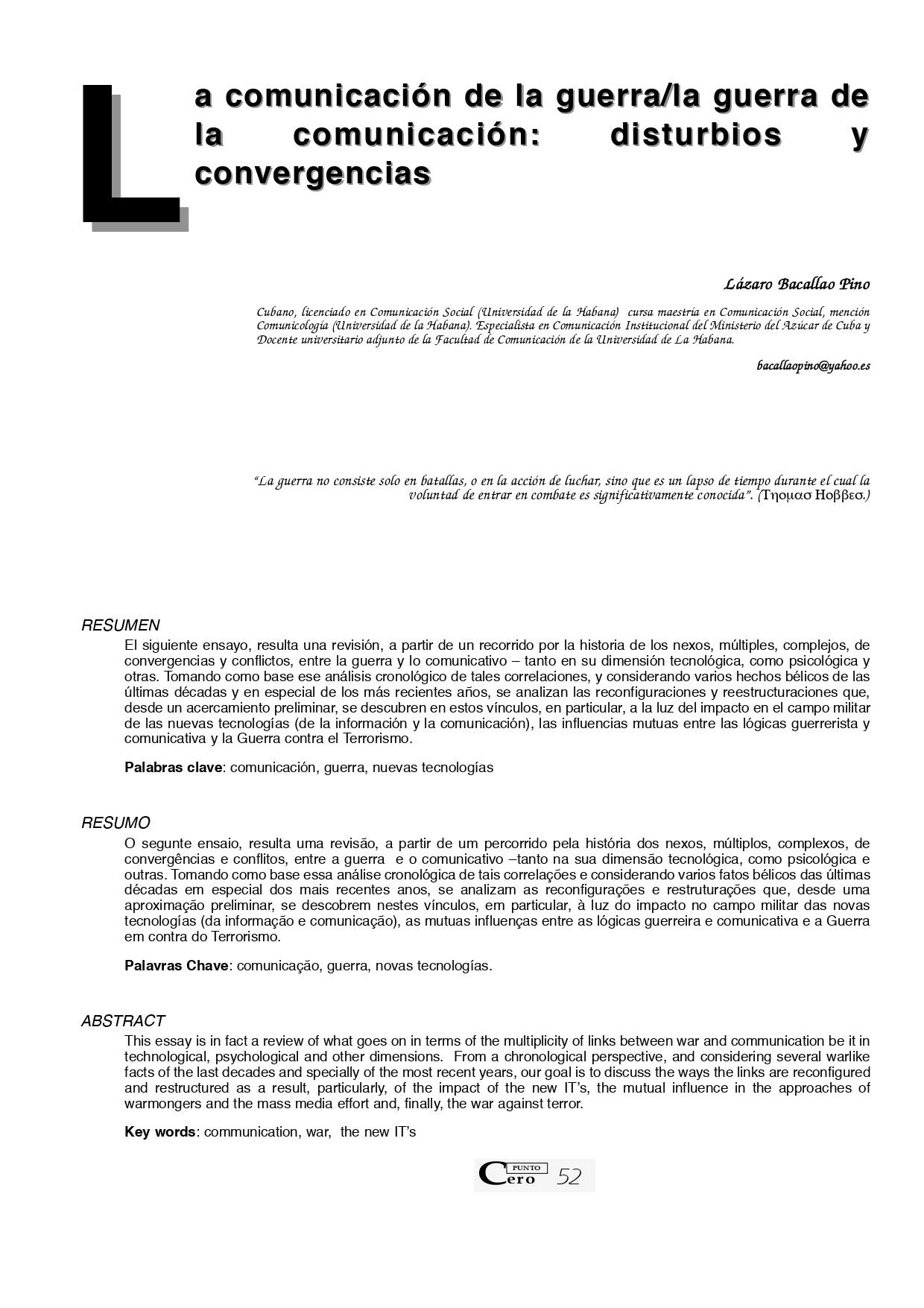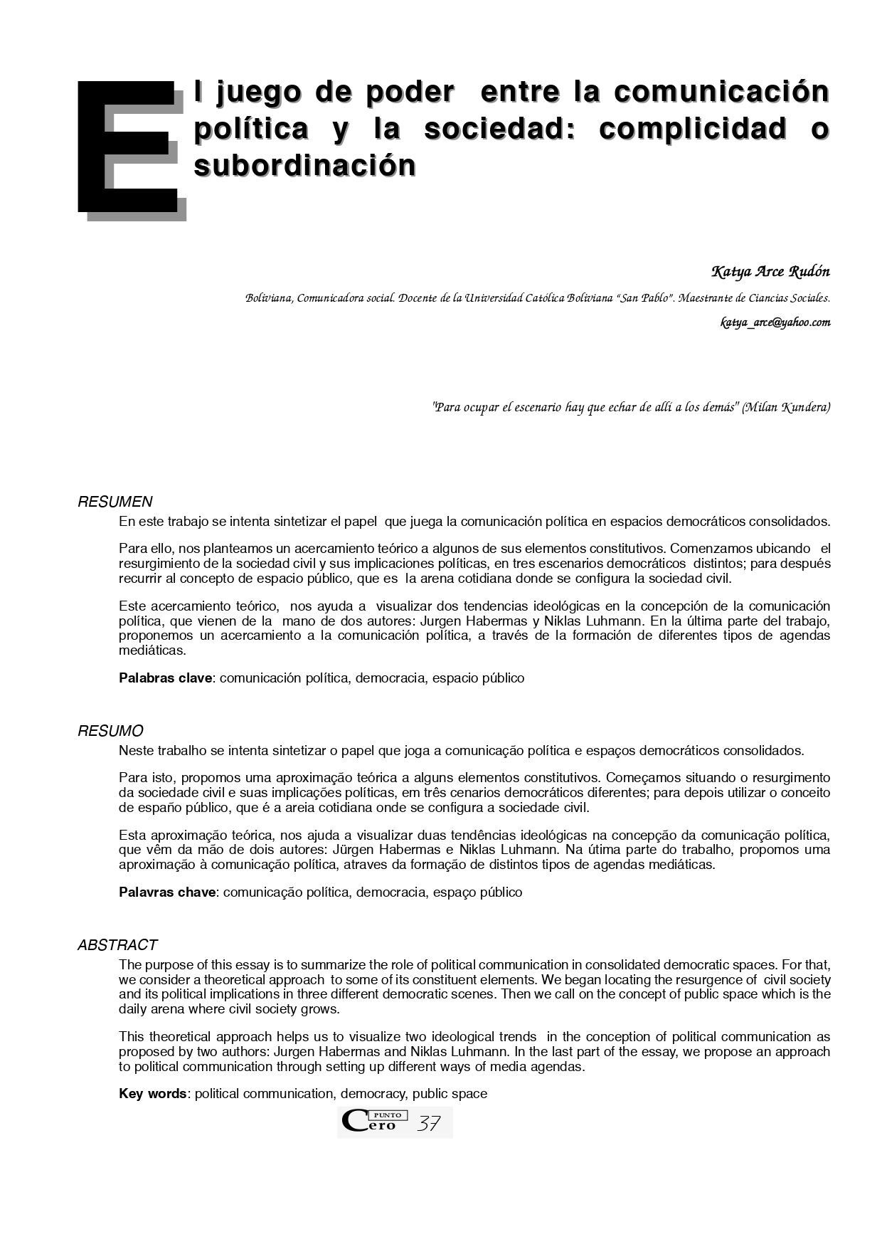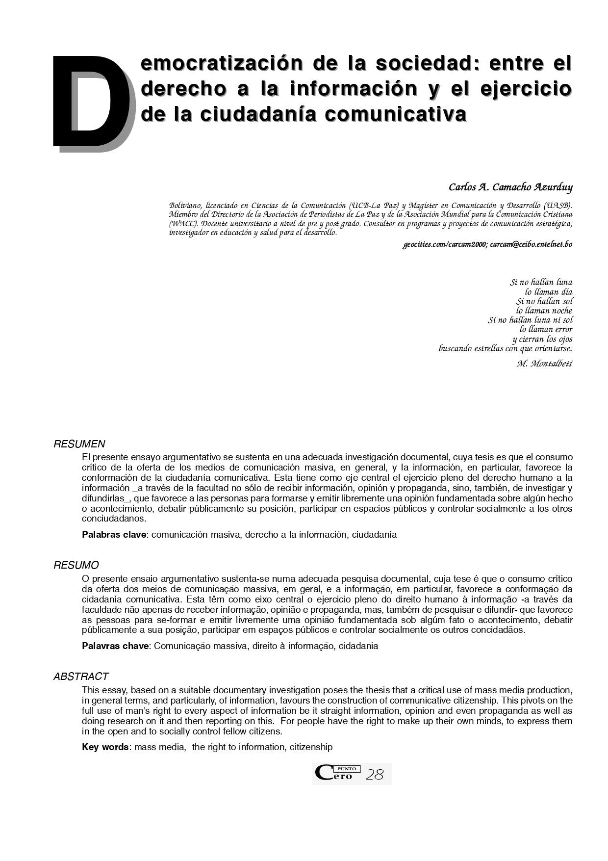 Vol. 10 No. 10 (2005): Revista Punto Cero No. 10