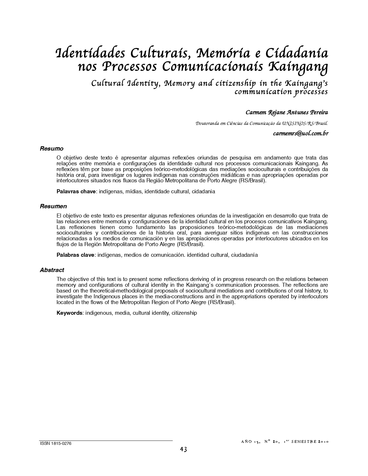 Cultural ldentity, Memory and cítízenship ín the Kaíngang's communication processes