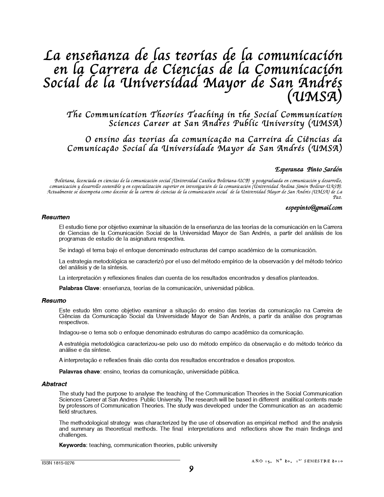 Vol. 15 No. 20 (2010): Revista Punto Cero No. 20